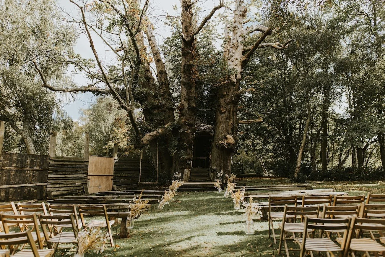 The Love Nest at Kingdom is our little slice of magic you can incorporate into your wedding day. Something you can’t get anywhere else. Just meters away from our woodland treehouse, we have The Seven Sisters, the largest living tree in the British Isles. The Seven Sisters is so large, that there was space within to create a little love nest, which you can use to get married in. With an opening for all your loved ones to watch you tie the knot, this makes for one of the most wonderful ceremonies you could possibly imagine.